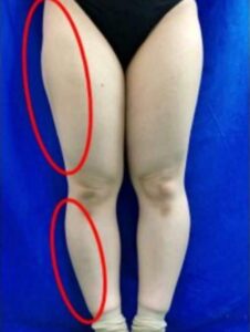 下図の太ももやふくらはぎが「自分の脚みたい!」と思った方は反り腰で大転子がズレている可能性が高いです。