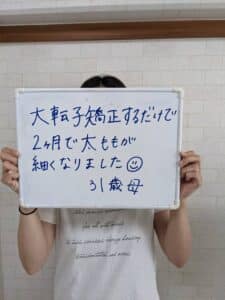 そして出産後は開いた骨盤の矯正をしていただき、お陰で腰の調子も良いです。